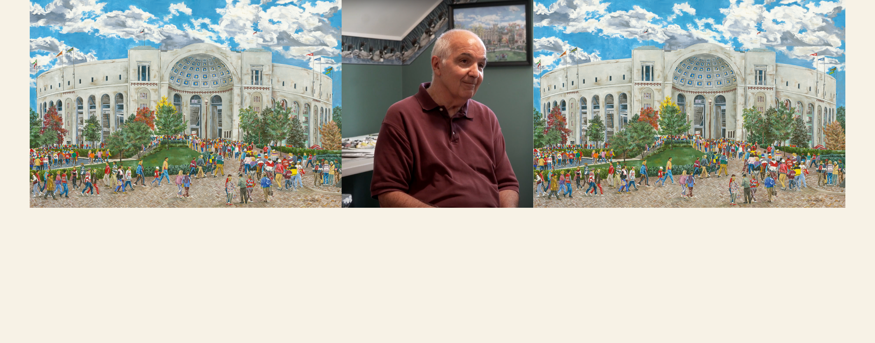 “It’s a real honor to have my work there,” he says with a smile. “Alumni and fans from across the country come to Columbus to watch the Buckeyes. To have my artwork in places like that — it’s exciting and humbling.”