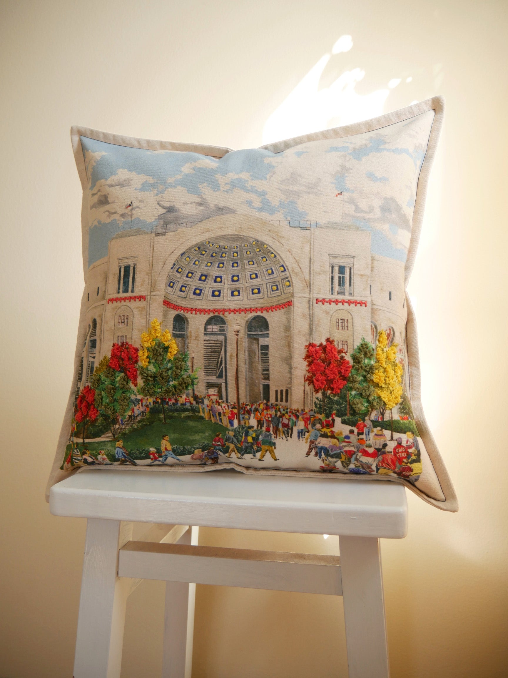 “I love choosing subjects like stadiums or campus landmarks. A lot of college campuses have these incredible European-style buildings. I’m inspired by that architecture as much as the sports themselves.”